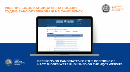The High Qualification Commission of Judges has published the decisions on candidates for the positions of HACC judges based on the results of a special joint meeting of the HQCJ and the PCIE