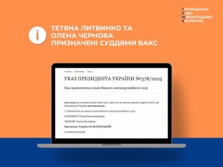 To recall, following the competition, on 31 March 2025, the High Qualification Commission of Judges recommended that the High Council of Justice consider for the appointment two candidates, Tetiana Lytvynko and Olena Chernova, as judges of the High Anti-Corruption Court.