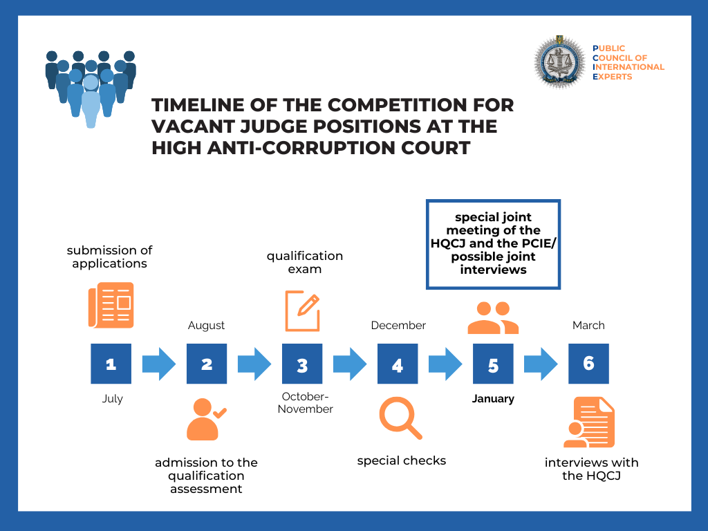 As an auxiliary body of the HQCJ, the Public Council of International Experts ensures that candidates for the positions of judges of the High Anti-Corruption Court meet the criteria of integrity, knowledge, and practical skills.