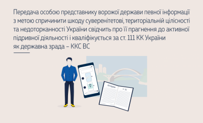The distinction between Articles 114-2 and 111 of the Criminal Code of Ukraine, in cases involving the transmission of information referred to in Article 114-2, lies in the nature of the intent (mens rea) with which the incriminated acts are committed. In the commission of state treason, the transmission of certain information is directed towards achieving the objective of causing harm to the sovereignty, territorial integrity and inviolability, defence capability, state, economic or information security of Ukraine. Such a purpose goes beyond the mens rea of the offence under Article 114-2 and forms the intent characteristic of state treason.