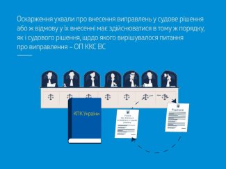 The content of a ruling on corrections to a court decision is always interconnected with the content of the decision being amended. Therefore, when such a ruling is challenged on appeal or in cassation, the assessment of its legality in terms of content must be carried out simultaneously with the assessment of the amended court decision. Since, under Part 3 of Article 307 of the Criminal Procedure Code of Ukraine, a ruling of an investigating judge dismissing a complaint about a prosecutor’s inaction is not subject to appeal, a ruling of the same court introducing corrections to it likewise cannot be subject to appellate review.