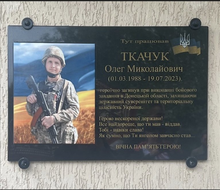 Меморіальна дошка на фасаді суду стане символом світлої пам’яті про людину високої честі, гідності та порядності, патріота України, героя - Олега Ткачука.