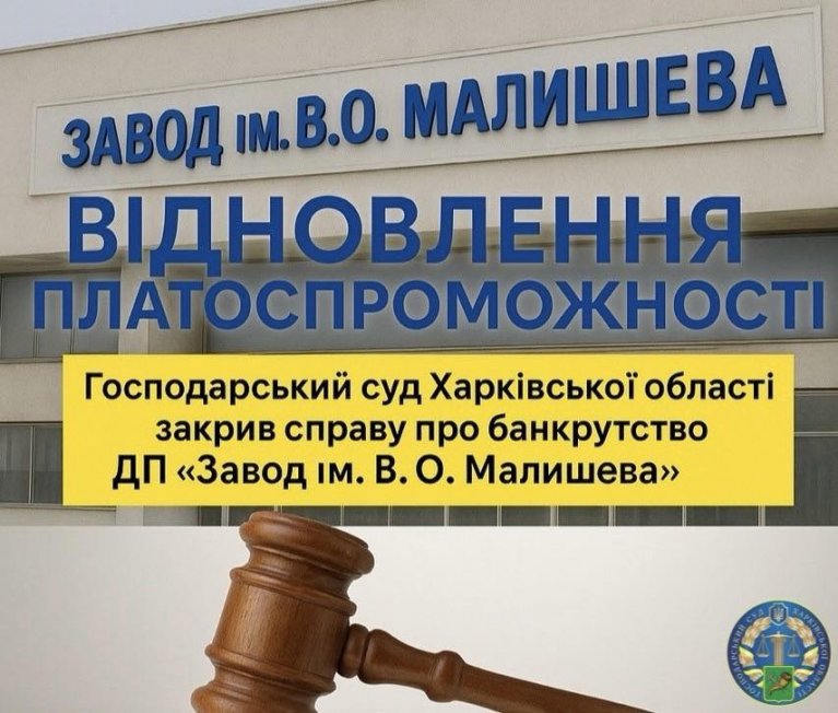Враховуючи, що підприємство у повному обсязі задовольнило усі вимоги кредиторів і відновило свою платоспроможність, суд дійшов висновку про наявність правових підстав для закриття провадження у справі про банкрутство Державного підприємства «Завод імені В.О. Малишева».