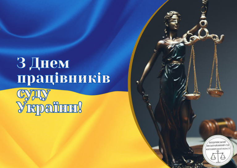 У день професійного свята колектив Бердичівського міськрайонного суду дякує усім, хто служить закону і людям і щодня докладає зусиль для здійснення правосуддя. Нехай суспільство впевнено довіряє вам, поважає вашу працю, а держава – гідно її оцінює. Стабільності, витримки, мирного неба, родинного затишку, кращого майбутнього й віри в те, що справедливість обов’язково переможе!