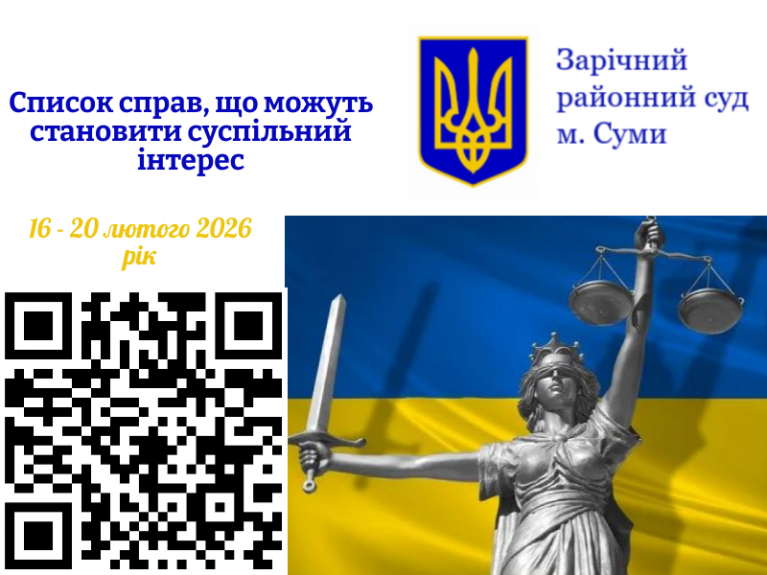 16.02.2026 на 16 год 00 хв кримінальне провадження № 591/7854/25 стосовно громадянина С., якого обвинувачено в державній зраді (ч. 2 ст. 111 КК України).