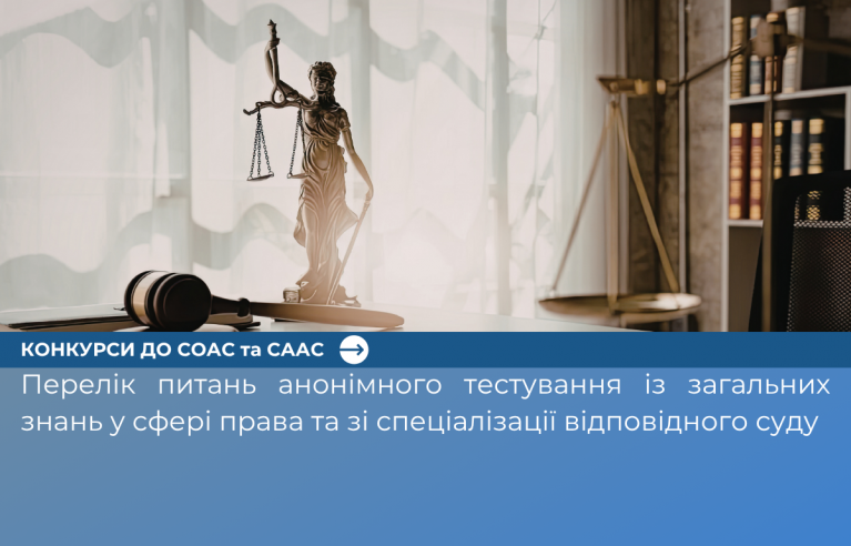 Відповідно до рішення Вищої кваліфікаційної комісії суддів України від 23 березня 2026 року, з метою належної підготовки до кваліфікаційних іспитів кандидатів на посади суддів Спеціалізованого окружного адміністративного суду та Спеціалізованого апеляційного адміністративного суду в межах конкурсів, оголошених 29 жовтня 2025 року, на офіційному вебсайті Комісії оприлюднено переліки питань анонімного тестування із загальних знань у сфері права та зі спеціалізації відповідного суду.