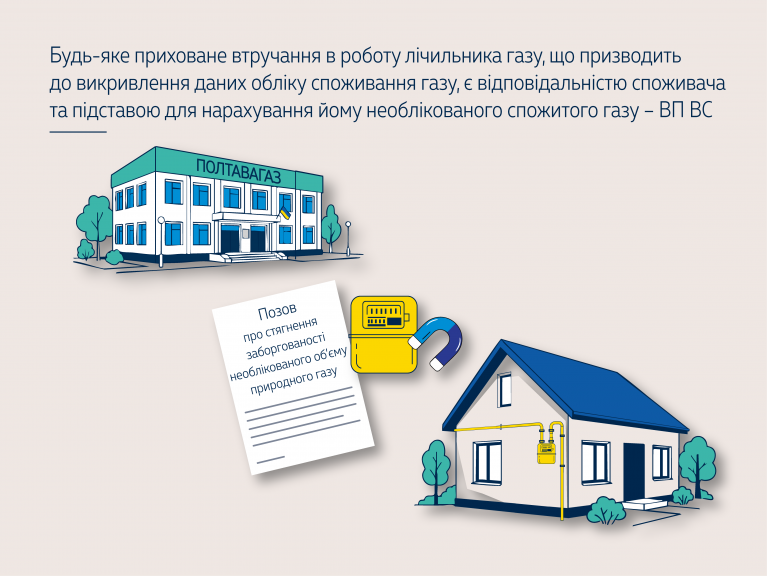 Викривлення даних обліку газу, передумовою для якого є несанкціоноване втручання в роботу лічильника газу / засобу вимірювальної техніки, після проведення всіх процедурних питань доведення цього Оператором ГРМ є підставою для нарахування споживачу необлікованого спожитого газу за той період та відповідно до того втручання, яке відбулося.