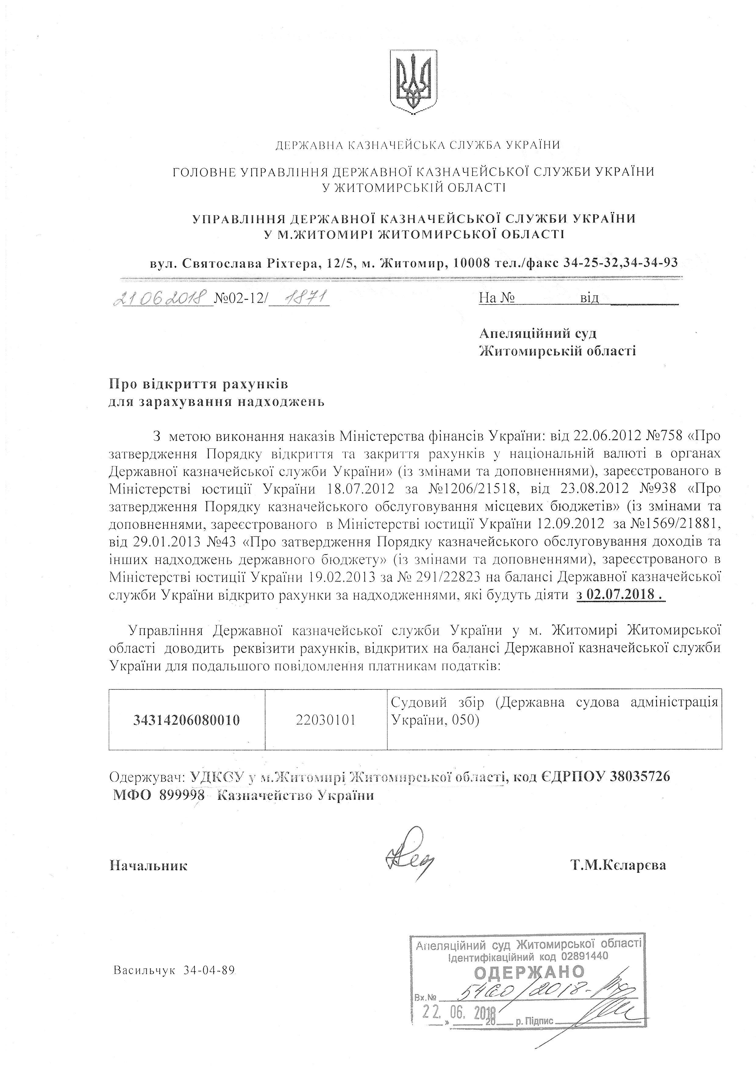 Із вказаної дати реквізити рахунку для сплати судового збору до Апеляційного суду Житомирської області будуть наступними: