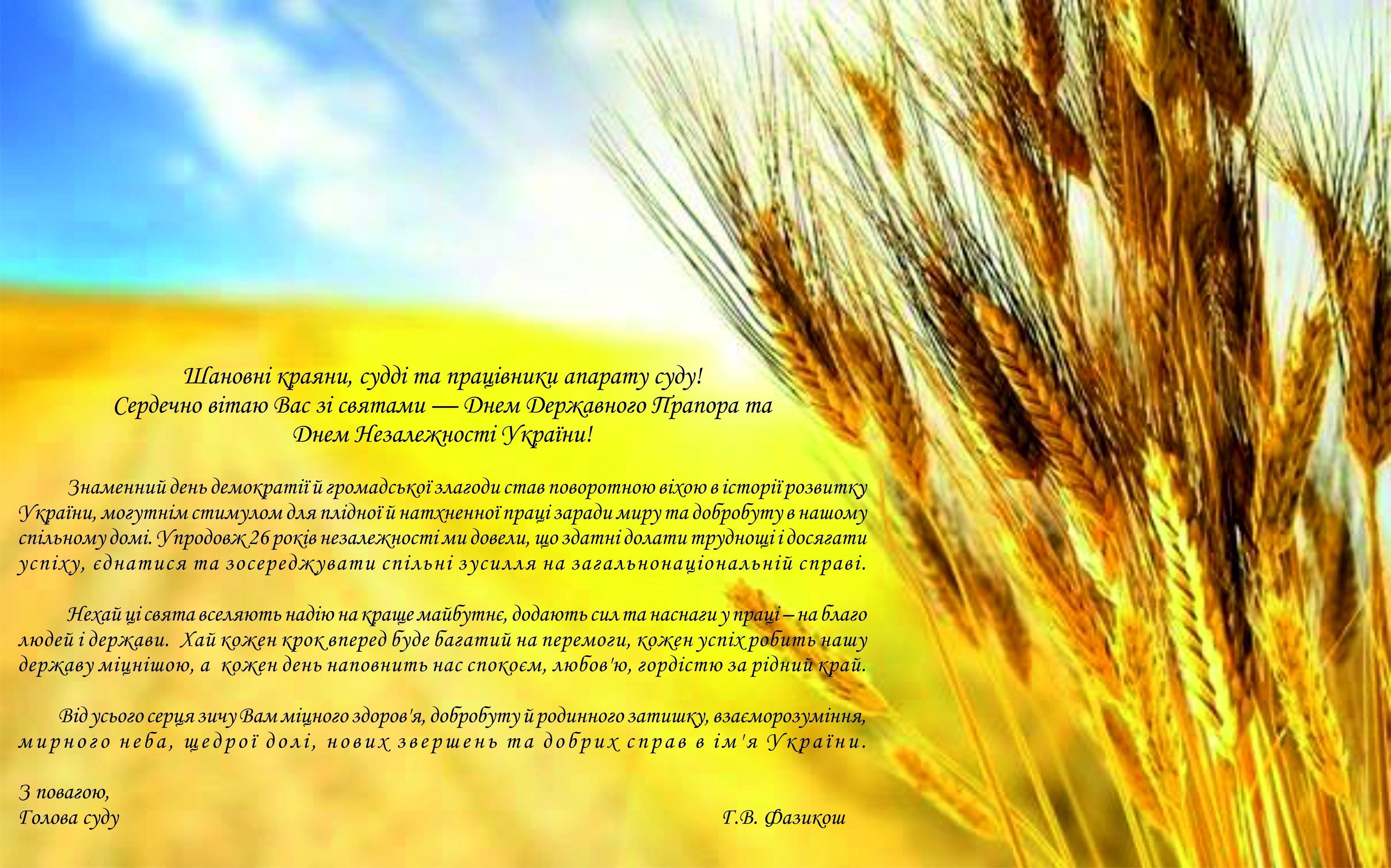 Привітання з Днем Державного Прапора та Днем Незалежності України