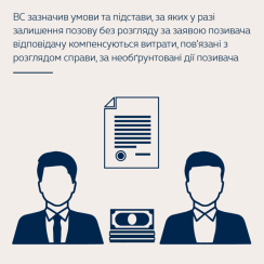 Скасовуючи ухвалу апеляційного суду та залишаючи в силі ухвалу суду першої інстанції, Верховний Суд виходив із того, що для стягнення компенсації здійснених відповідачем витрат, пов’язаних з розглядом справи, відповідачу згідно з процесуальним обов’язком доказування необхідно було довести, а суду встановити і зазначити про це в судовому рішенні, які саме необґрунтовані дії позивача були ним здійснені в ході розгляду справи та в чому вони виражені, зокрема: чи діяв позивач недобросовісно та пред’явив необґрунтований позов; чи систематично протидіяв правильному та швидкому вирішенню спору; чи недобросовісний позивач мав на меті протиправну мету – ущемлення прав та інтересів відповідача; чи були дії позивача умисні та який ступінь його вини й чим це підтверджується.