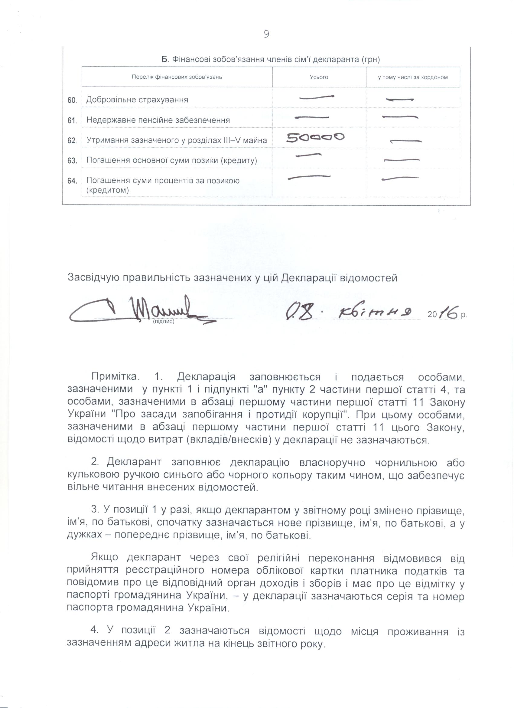 Декларація голови Апеляційного суду Чернігівської області С.Р. Тагієва за 2015 рік