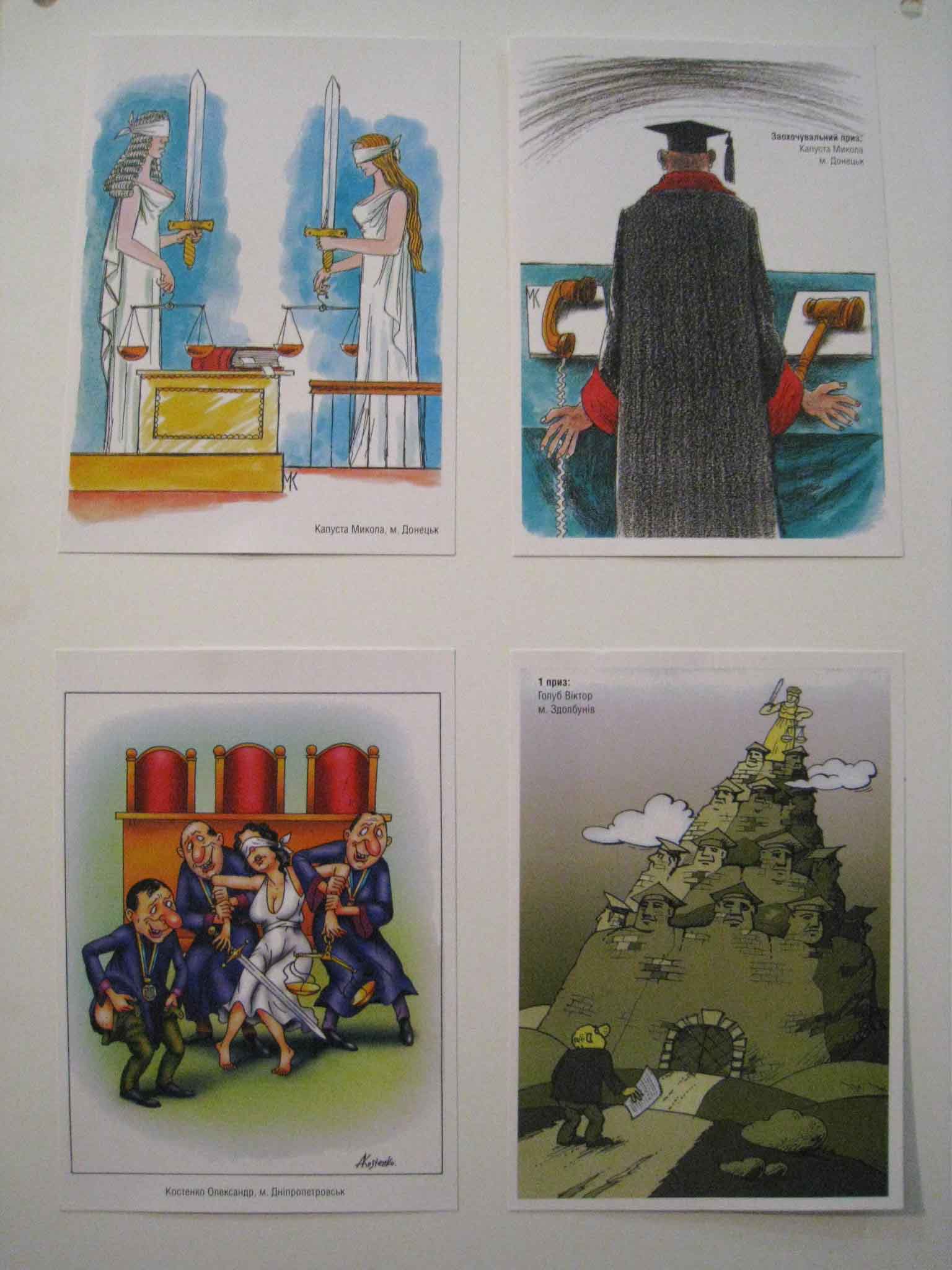 21 квітня група суддів та працівників апеляційного суду Чернігівської області відвідали виставку робіт учасників ІV Всеукраїнського конкурсу карикатур з прав людини «Встати, суд іде!», що розгорнулась в художньому музеї ім. Григорія Галагана. На виставці представлено близько ста робіт українських карикатуристів. Усі вони висміюють таке явище в судовій системі як корупція.