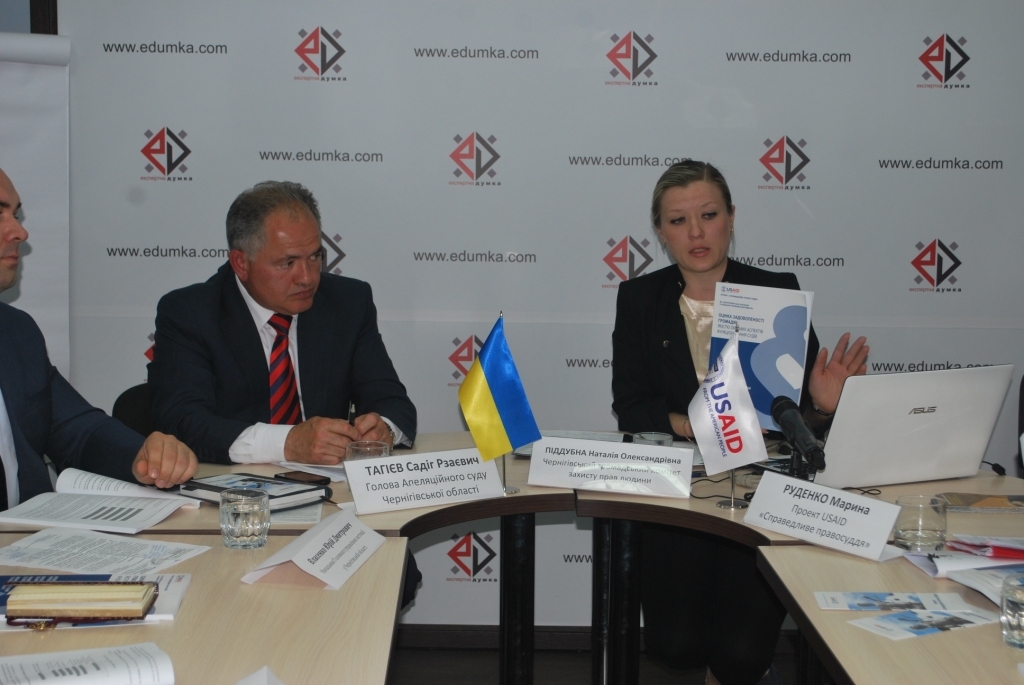 Як зазначила керівник програм Чернігівського громадського комітету захисту прав людини Наталія Піддубна, за 5-тибальною шкалою роботу суду відвідувачі оцінили досить високо. Зокрема, близько 70% опитаних поставили оцінку у 4 та 5 балів, а майже три чверті опитаних респондентів сприймають роботу судді на 4 та 5 балів. Понад 80% відсотків визначили своє враження від візиту до суду як таке, що відповідає їхнім очікуванням, або ж є кращим, ніж вони очікували.