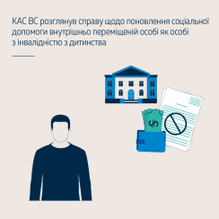 While dismissing the claim, the court of first instance, with which the court of appeal agreed, had held that the defendant had had no grounds to award and restore the payment of state social assistance to the plaintiff as a person with a disability from childhood, since the certificate of registration of an internally displaced person had been cancelled due to non-confirmation of the fact of residence at the address.
