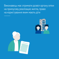 The SC Grand Chamber established that in accordance with the Procedure for the Sale of Seized Property (approved by the Order of the Ministry of Justice of Ukraine of September 29, 2016, No. 2831/5) in case of transfer for sale of real estate over which children have the right of ownership (or the right to use) the prior permit of the tutorship and guardianship authorities granted by law is required. If such permit is not granted, the executor continues to enforce the judgment at the expense of the debtor’s other property, and in the absence of such property, returns the writ of execution to the debt collector.