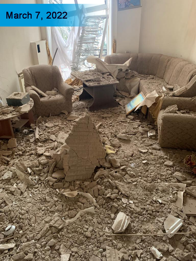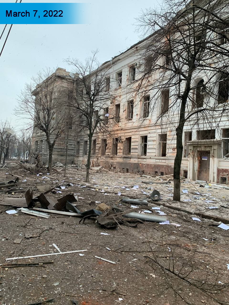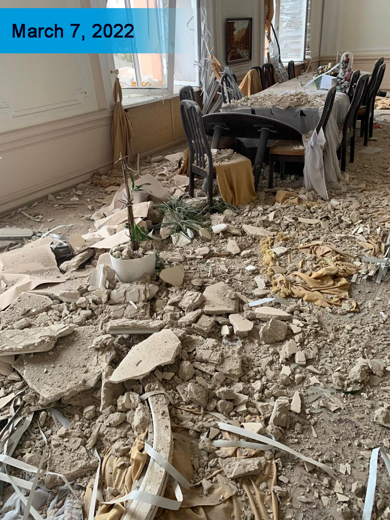 Yesterday, March 6, 2022, at about 19:20, two powerful explosions occurred near the building of the Kharkiv Court of Appeal, which caused significant damage to the structure. The blast completely shattered the windows, significantly damaged the interior rooms, burned the roof.