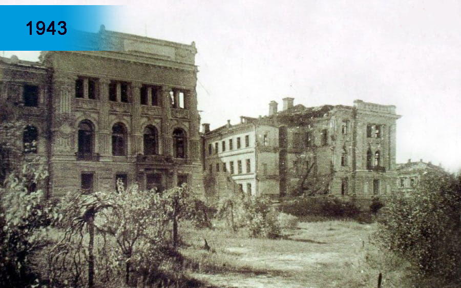 In the 1920s, according to the design of O. M. Beketov, the wings of the building were extended to form a third courtyard with a passageway into it. During World War II, the building suffered considerable damage and the right wing of the main façade was razed to the ground.