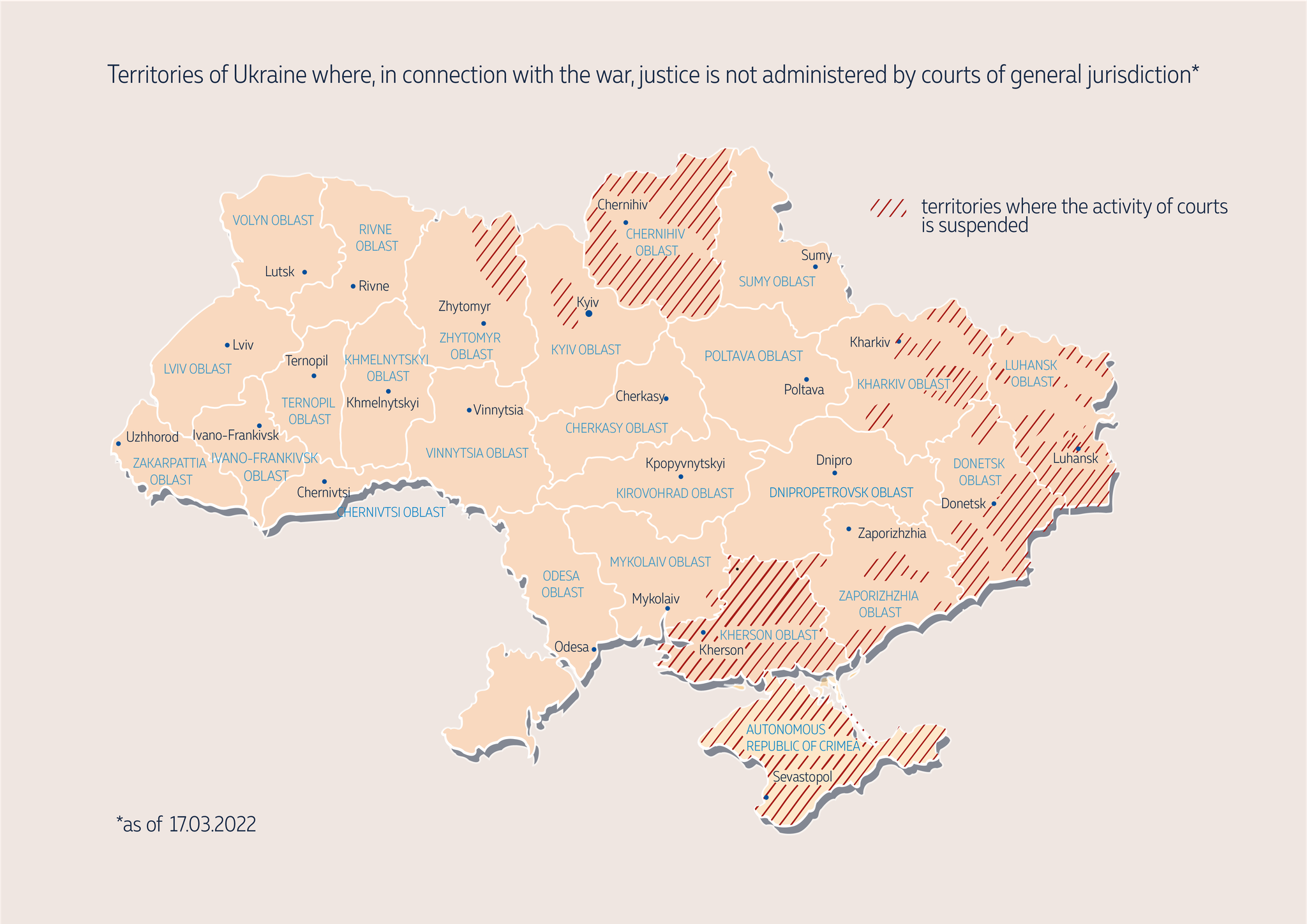 Dear friends, here is the map of territories of Ukraine where, in connection with the war, justice is not administered by courts of general jurisdiction.