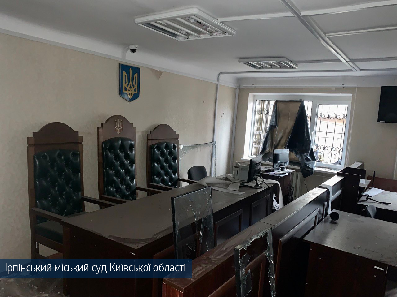 Fortunately, the building of the Irpin City Court of Kyiv Region withstood the onslaught of the occupation troops and received non-critical damage: some windows were broken, some organizational equipment disappeared. The elimination of these minor (compared to other court buildings) shortcomings will help to restore the work of the court in the shortest possible time.