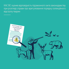 The Ministry of Agrarian Policy and Food of Ukraine refused to bring the Instruction on the selective shooting of game animals, approved by the Order of the Ministry of Agrarian Policy of February 7, 2014, No. 57 (Instruction), into line with the Law of Ukraine On Hunting Economy and Shooting, arguing that the by-law does not contradict part 5 of Art. 32 of this Law.