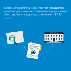 According to the content of para. 2, part 2, Art. 134 of the Land Code of Ukraine, if a person does not have the right of ownership on the object located on a land plot, there are no grounds for applying non-competitive bases for the sale of this land plot. At the same time, it does not matter whether it is an object of construction in progress or a completed real estate object put into operation in accordance with the law.