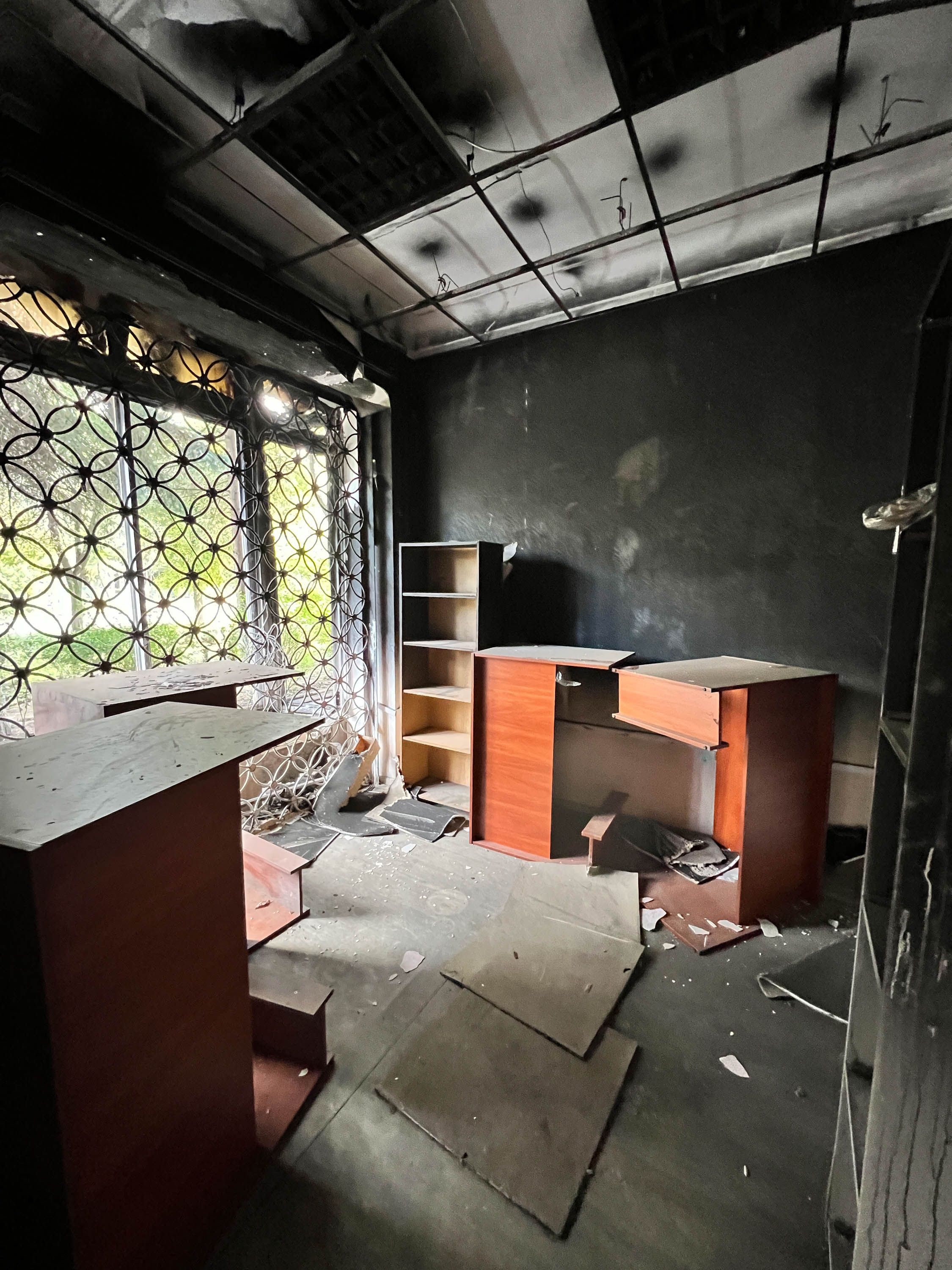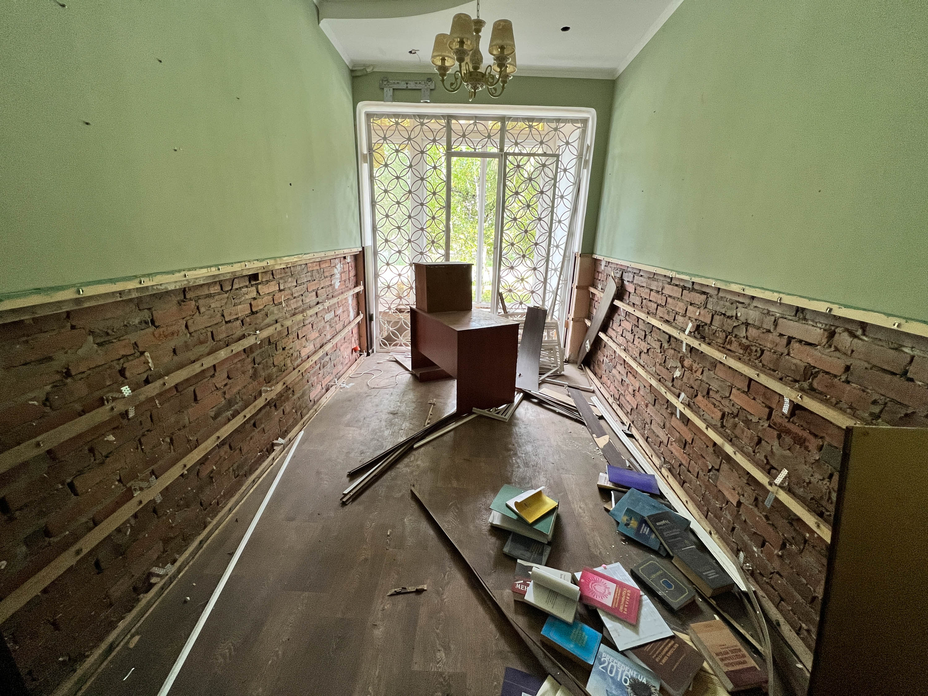 We would like to remind you that the court is located on the ground floor of a five-storey building. According to Oleksandr Hertsov, the court premises were partially damaged: as a result of the fire, several courtrooms and offices were burned down, others were looted and smashed. "Stolen equipment, broken furniture, torn panels on the walls, all the windows broken, electricity damaged. Even the radiators are broken," he said. He also drew attention to the occupiers' signature style - the wash basin was stolen.