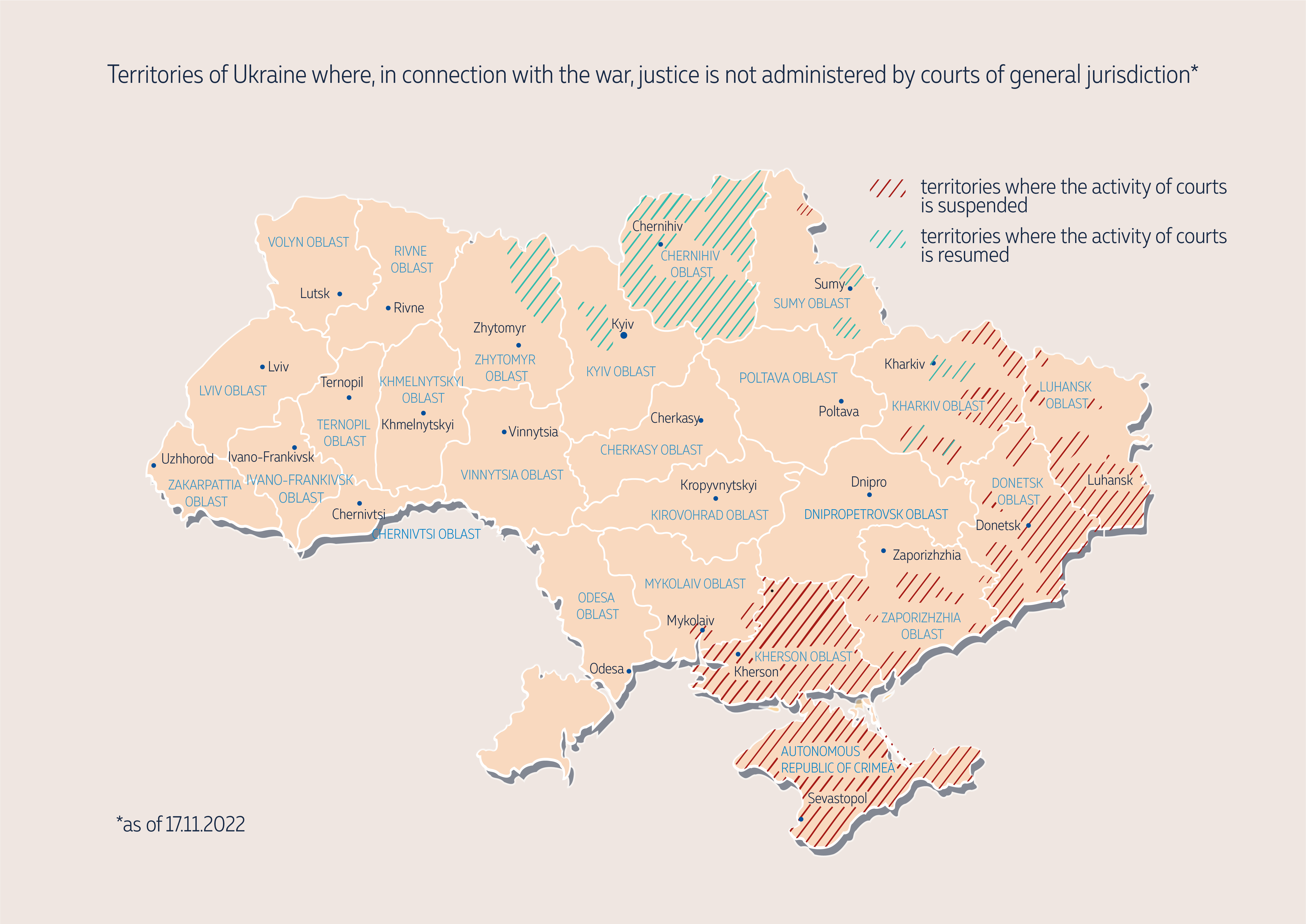 Dear friends, here is the map of territories of Ukraine where, in connection with the war, justice is not administered by courts of general jurisdiction.