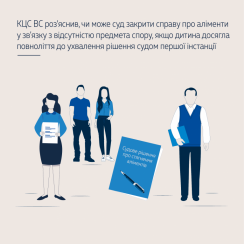 The mere fact that the children reach the age of majority before the court of first instance makes a decision on the merits of the dispute on the amount of alimony cannot be a reason for terminating the proceedings under para. 2, part 1 of Article 255 of the Civil Procedure Code of Ukraine due to the absence of a cause of action.
