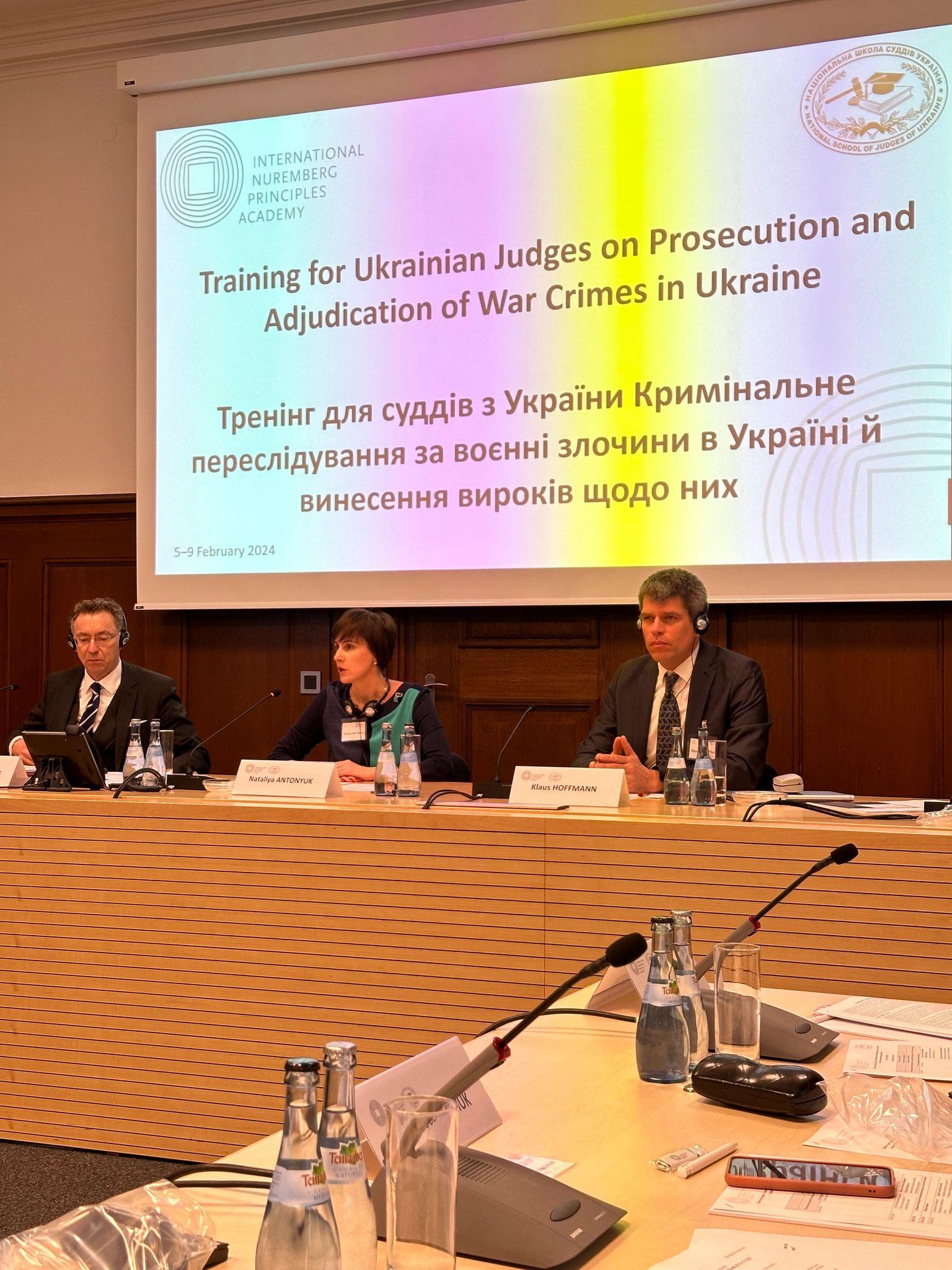 The training for Ukrainian judges "Prosecution and Adjudication of War Crimes in Ukraine" was organized by the National School of Judges of Ukraine in cooperation with and at the invitation of the International Nuremberg Principles Academy.