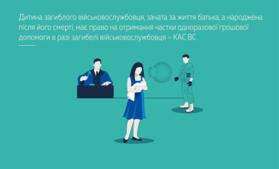 According to the panel of judges, the child of a deceased serviceman, within the meaning of Article 16-1 of the Law of Ukraine ‘On Social and Legal Protection of Servicemen and Members of Their Families’, belongs to the circle of persons entitled to receive a one-time financial assistance in connection with the death of the serviceman.