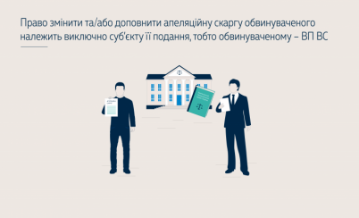 In view of the above, the Grand Chamber of the Supreme Court concluded that a "person who filed an appeal" within the meaning of Part 3 of Article 403 of the CPC of Ukraine is only a participant in the court proceedings who has exercised the right to appeal on his or her own behalf. The right to amend and/or supplement the accused's appeal is vested exclusively in the subject of the appeal, i.e. the accused.