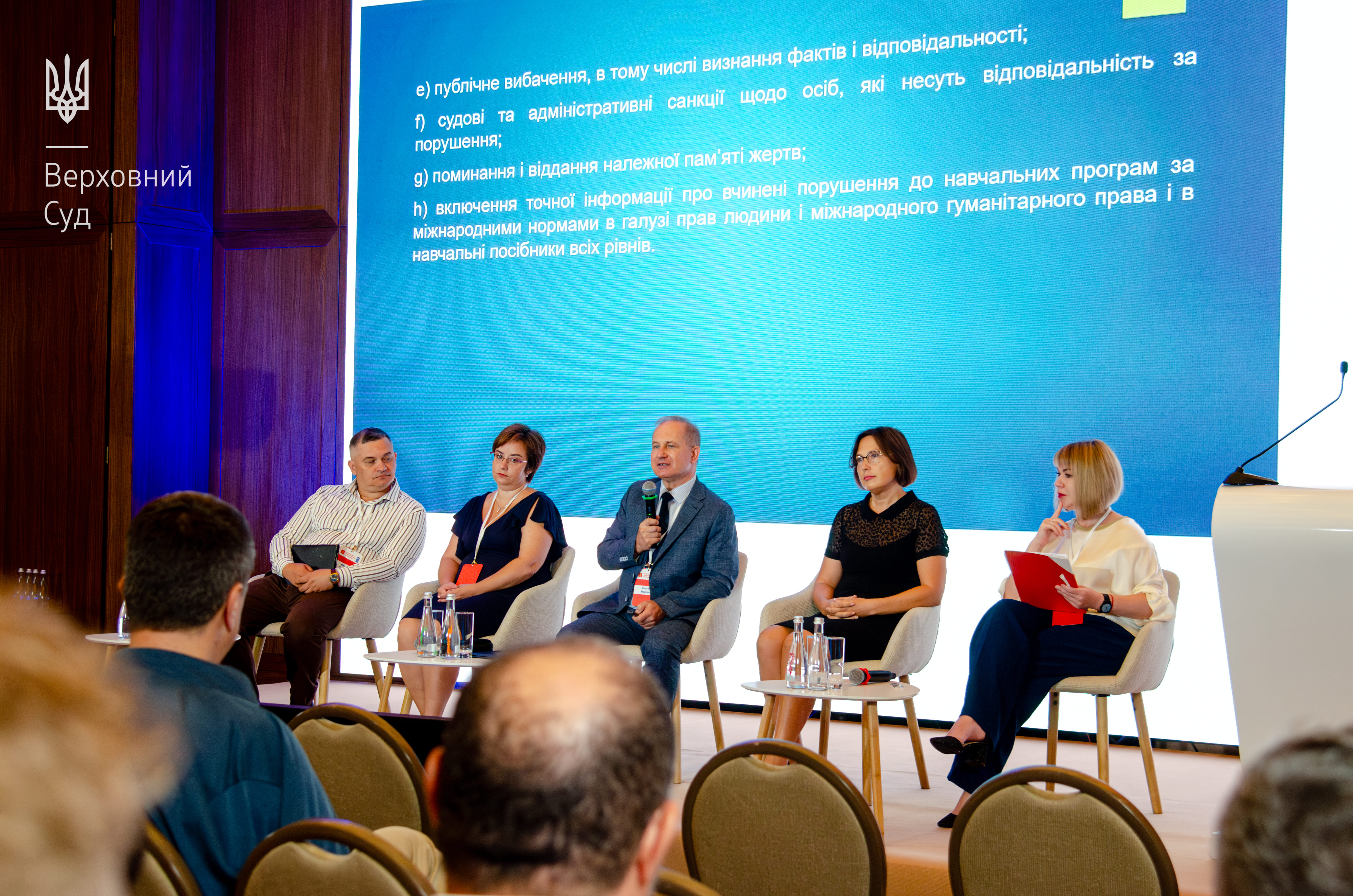 According to Serhii Martiev, Judge of the Grand Chamber of the Supreme Court, it is difficult to overestimate the role of the judiciary in the development of the national model of transitional justice. He noted that the basic principles and mechanisms for restoring the rights of individuals (restitution, compensation, satisfaction, etc.) are regulated by the UN General Assembly Resolution of 16 December 2005. Ukraine has not yet established a special pre-trial body responsible for the functioning of these mechanisms for the restoration of violated rights, so the implementation of transitional justice currently relies solely on the judicial system.