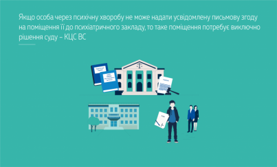 A systematic analysis of the relevant legislation, the decisions of the Constitutional Court of Ukraine of 2 June 2016 in case No. 1-1/2016, of 20 December 2018 in case No. 1-170/2018, as well as the relevant case law of the European Court of Human Rights, gives grounds to believe that if an incapacitated person is unable to give informed written consent to placement in a psychiatric institution due to mental health, such placement is involuntary and requires a court decision.