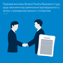 The SC Grand Chamber concluded that in case of causing damage by criminal offence in the form of victim’s death, the discharge from criminal liability due to the reconciliation between the guilty and the victim is impossible in the context of Article 46 of the Criminal Code of Ukraine.