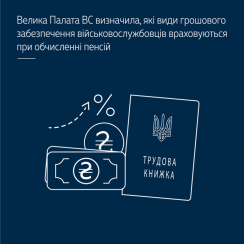 Having analyzed the Law of Ukraine "On Pension Provision of Persons Dismissed from Military Service, and Some Other Persons" of 9 April 1992 and the Resolution of the Cabinet of Ministers of Ukraine No. 393 “On the Procedure of Calculation of Service Length, Granting and Payment of Pension and Financial Assistance for Officers, Warrant Officers, Midshipmen, Extended Military Servicemen and Volunteer Military Servicemen, Ordinary and Management Staff of Internal Affairs Bodies, Policeman and Members of Their Families” of 17 July 1992, the judges of the SC GC concluded that only monthly basic types of financial support: official salary, pay for rank, seniority allowance, as well as monthly additional types of financial support (surcharge, benefit, pay increment) and awards, which shall be also be monthly, shall be referred to financial provision, from the amount of which the pension shall be calculated