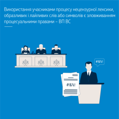 Coarse language, offensive words and expletives or relevant symbols, particularly, for determining personal characteristics of a case participants, other participants of judicial process, their representatives and the court (judges) may not be used neither in claims regarding the essence of case, claims on procedural issues, other procedural documents, nor in speeches of participants of judicial process and their representatives.