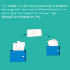 The Grand Chamber of the Supreme Court drew attention to the fact that pursuant to Part 5 of Article 21 of the Code of Administrative Proceedings of Ukraine the requirements on compensation of damage caused, particularly, by illegal inactivity of a subject of public authority, shall be considered by an administrative court, if they are claimed in the same proceedings with the demand to solve public and legal dispute. Otherwise, such demands shall be solved by courts within the procedure of civil or commercial judicial proceedings.
