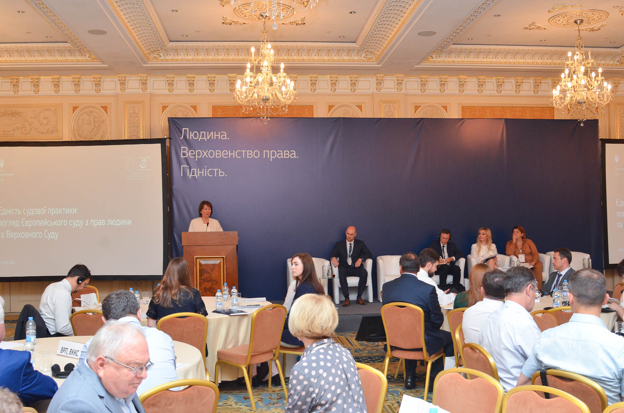 President of the Supreme Court Valentyna Danishevska presented her greeting speech at the opening of two-day Conference “Uniformity of Case Law: Opinions of the European Court of Human Rights and the Supreme Court”. The conference has started its work today, on 14 June. The SC President thanked the ECHR judges, the Council of Europe Project “Supporting Ukraine in Execution of Judgments of the European Court of Human Rights” and the Council of Europe’s Office in Ukraine for the expert assistance and the participation in the Conference.