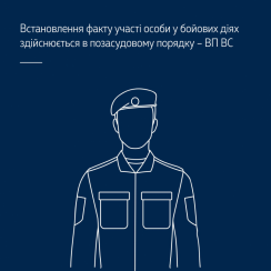 While solving the dispute, the SC Grand Chamber noted that the establishment of a person’s participation in the Anti-Terrorist Operation was a component of process of granting him\her with the status of combatant and should be performed in extra-judicial ,but not in judicial, procedure. The noted issue shall be referred to the authority of specially authorized bodies (commissions, inter-institutional commissions). The application of a person pretending to get the status of combatant shall be considered by these commissions, and in case of refusal to grant the relevant status the person has right to apply to court to appeal the commission’s decision, including as for the failure to establish the participation in military activity.