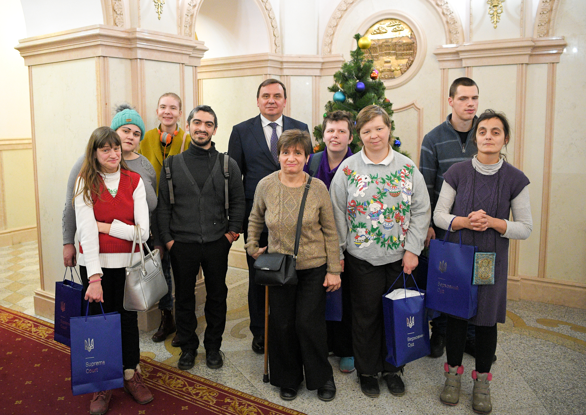 On 21 December the Klovskyi Palace was visited by children and adults undergoing rehabilitation in Kyiv Center for Social, Professional and Labor Rehabilitation for Persons with Disabilities. The Acting President of the Supreme Court Stanislav Kravchenko remarked that the SC judges were happy to welcome the guests. Taking that opportunity, he also congratulated the visitors on the upcoming holidays and wished success, as well as the realization of their cherished dreams.